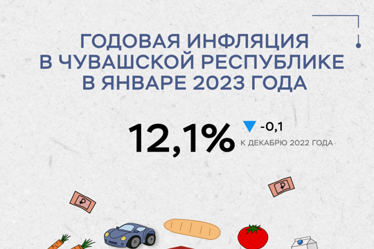 В январе 2023 года годовая инфляция в Чувашии составила 12,1% после 12,2% в декабре 2022 года. Рост цен в республике замедляется с мая прошлого года.