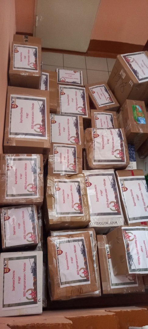Было собрано 45 коробок с продуктами длительного хранения, теплой одеждой, средствами личной гигиены. В каждую из посылок волонтеры Кадетской школы вложили поздравительные открытки и письма от кадет со словами глубокой благодарности и поддержки солдатам и офицерам, принимающим участие в специальной военной операции на территории Украины.
