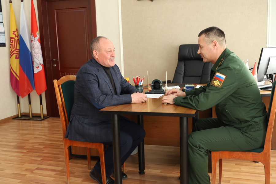 В администрации Яльчикского муниципального округа прошла встреча главы Яльчикского муниципального округа Леонарда Левого с генерал-майором Вооруженных Сил России Робертом Барановым.