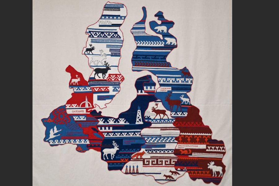 В 2023 году Евгения Маклакова изменила принцип построения композиции. Физическую карту Ямала она поделила на административные районы, взяв за основу традиционные цвета, орнаменты и фауну региона. В каждом районе свой орнаментальный сюжет, разбавленный силуэтами животных и птиц. Мастер использовала сукно, хлопчатобумажные и шерстяные нити, аппликацию, бисер.