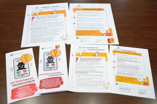 Особую ценность и важность представляет буклет «Ултавҫӑсенчен: сыхланăр!» («Осторожно, мошенники!»), содержащий правила поведения на чувашском языке для защиты личных финансовых средств в случае телефонного мошенничества и работе в сети Интернет, мессенджерах и соцсетях. Также представлены листовки «Осторожно: телефонные мошенники», рекомендации «Если ваши права нарушают», «Финансовое мошенничество. Защитите себя и свою семью», «Кредит есть, а денег нет», «Финансовый план семьи», «Экономическое воспитание дошкольников».