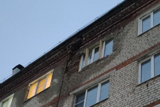 Намокание кладки наружной стены после идущих сейчас дождей привело к выпадению нескольких силикатных кирпичей. Еще 10 марта сотрудниками Прокуратуры и Госжилинспекции Чувашии была проведена проверка по факту намокания элементов облицовки. Сегодня произошло частичное разрушение облицовочной части из белого и красного кирпича.