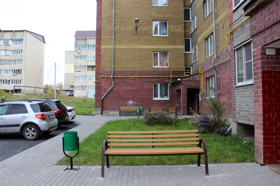 Новые скамейки и урны сделали двор более комфортным для жителей.