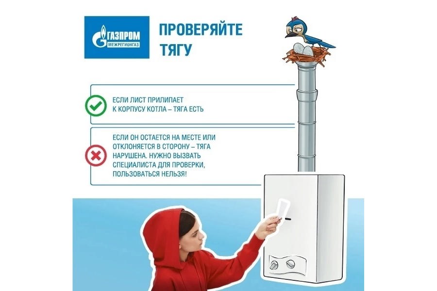 Обязательно проверяйте тягу в вентиляционном канале перед использованием газовых приборов.