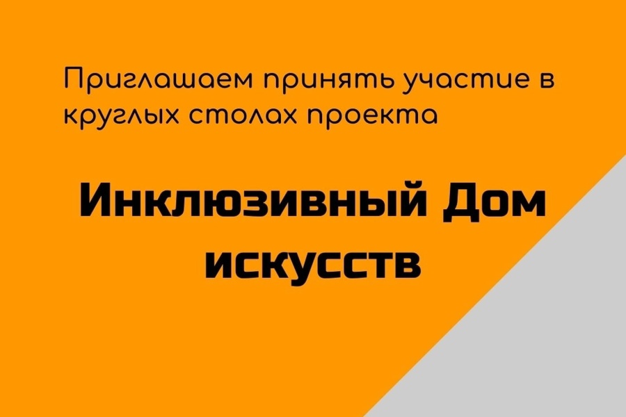 В рамках реализации проекта «Инклюзивный Дом искусств» запланировано проведение пяти круглых столов на тему «Инклюзивная культура: приоритеты и перспективы»: