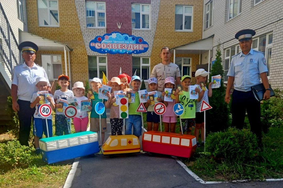 Гостями детского сада № 7 «Созвездие» г. Чебоксары стали капитан полиции, инспектор по пропаганде ОГИБДД УМВД России по городу Чебоксары Вениамин Колсанов и старший лейтенант полиции, инспектор по исполнению административного законодательства ОБ ДПС ГИБДД УМВД России по городу Чебоксары Андрей Дмитриев.