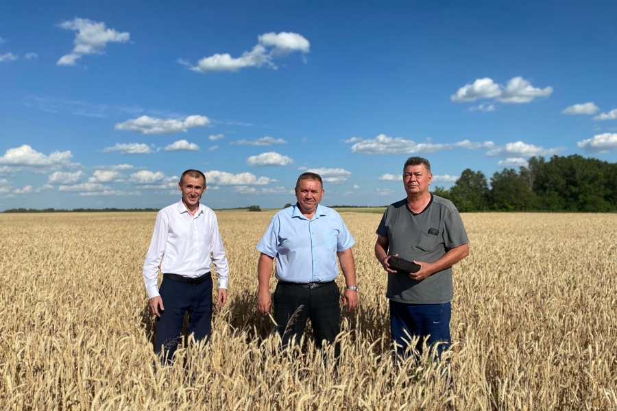 Уборочные работы ООО КФХ «Родина». Глава администрации района пожелал руководителю и механизаторам хозяйства дальнейших успехов при проведении сезонных полевых работ.