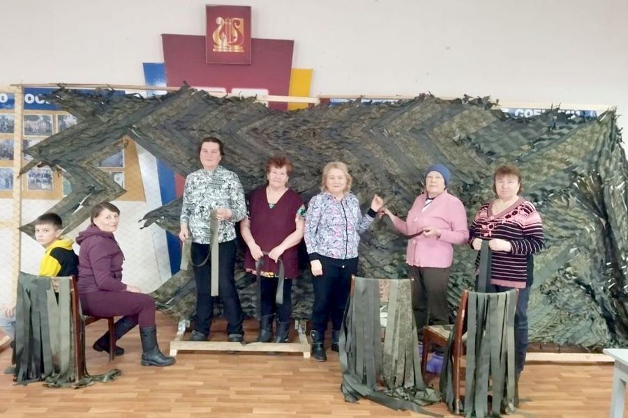 Жители села Баймашкино и деревни Калугино в рамках поддержки наших бойцов активно участвуют в изготовлении маскировочных сетей.