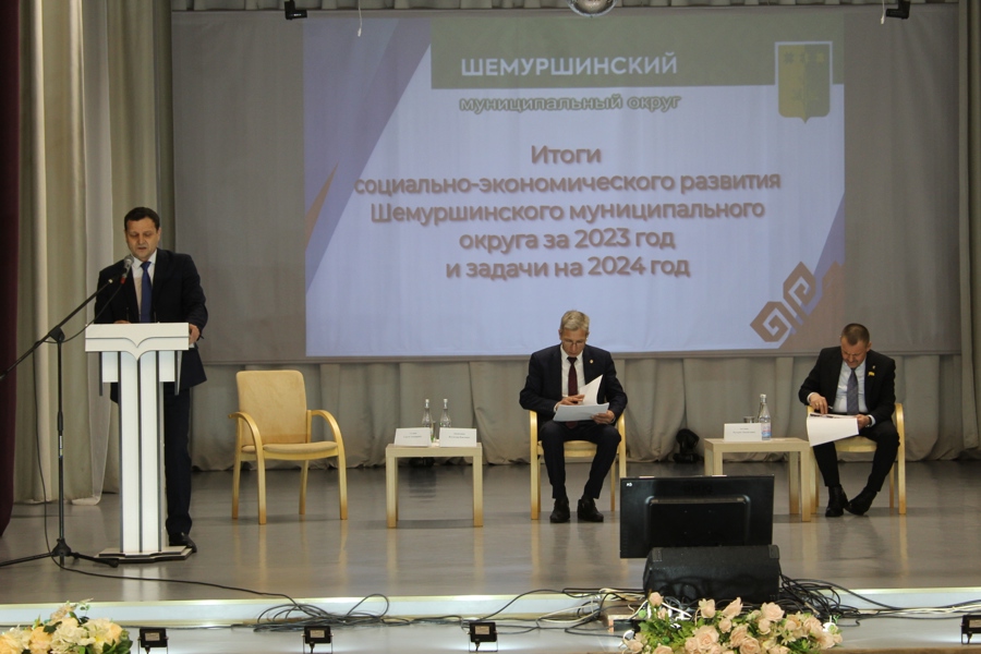 Сегодня в районном Доме культуры с. Шемурша состоялось торжественное мероприятие, посвящённое подведению итогов социально-экономического развития Шемуршинского муниципального округа за 2023 год,