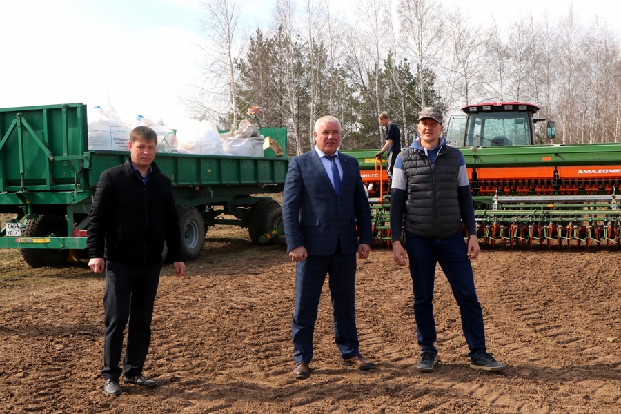 Глава Чебоксарского муниципального округа Николай Хорасев совместно с начальником отдела сельского хозяйства и экологии Алексеем Ивановым ознакомился с ходом весенней посевной кампании.