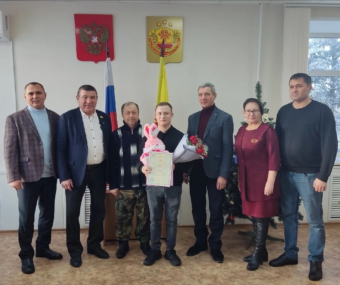 В первые рабочие дни нового года в отделе ЗАГС администрации Урмарского муниципального округа зарегистрировано рождение новорожденного ребёнка. Первым ребёнком, зарегистрированным в книге о рождении в 2023 году, стала девочка Алиса, родившаяся весом 2,440 кг и ростом 47 см. Её папе Максиму Андрееву в торжественной обстановке первый документ- свидетельство о рождении и памятный альбом вручили Глава администрации Урмарского муниципального округа Василий Шигильдеев и начальник отдела ЗАГС-председатель Урмарского районного отделения Союза женщин Чувашии Валентина Волкова. В адрес мамы ребёнка Динары Андреевой прозвучали слова поздравления депутата Госсовета Чувашской Республики Юрия Зорина. Юрий Александрович вручил цветы и подарок.