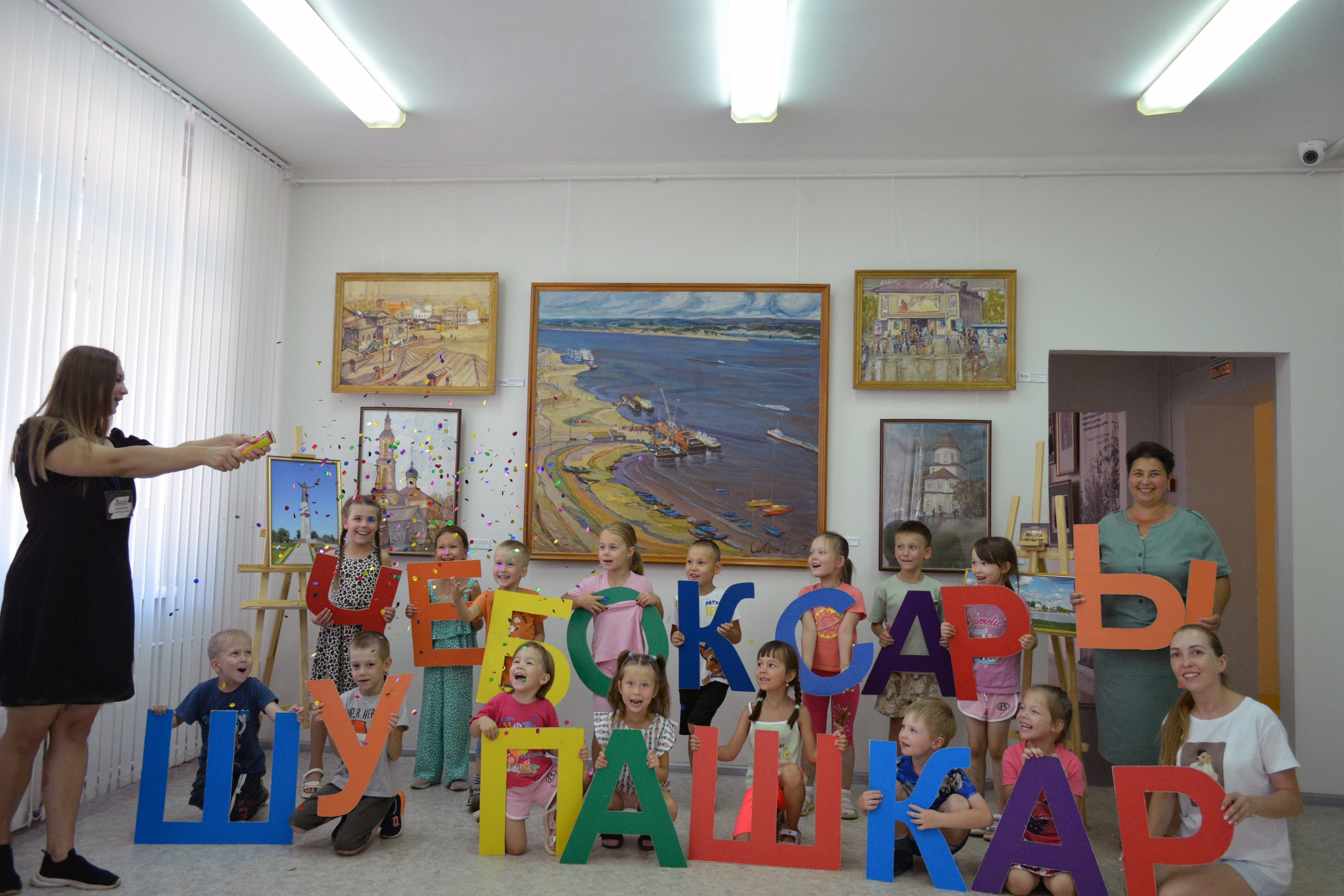 Следом юные посетители КВЦ «Радуга» увидели прошлое родного города, в этом помогли картины Людмилы и Аркадия Акцыновых, заслуженных художников России и Чувашии.