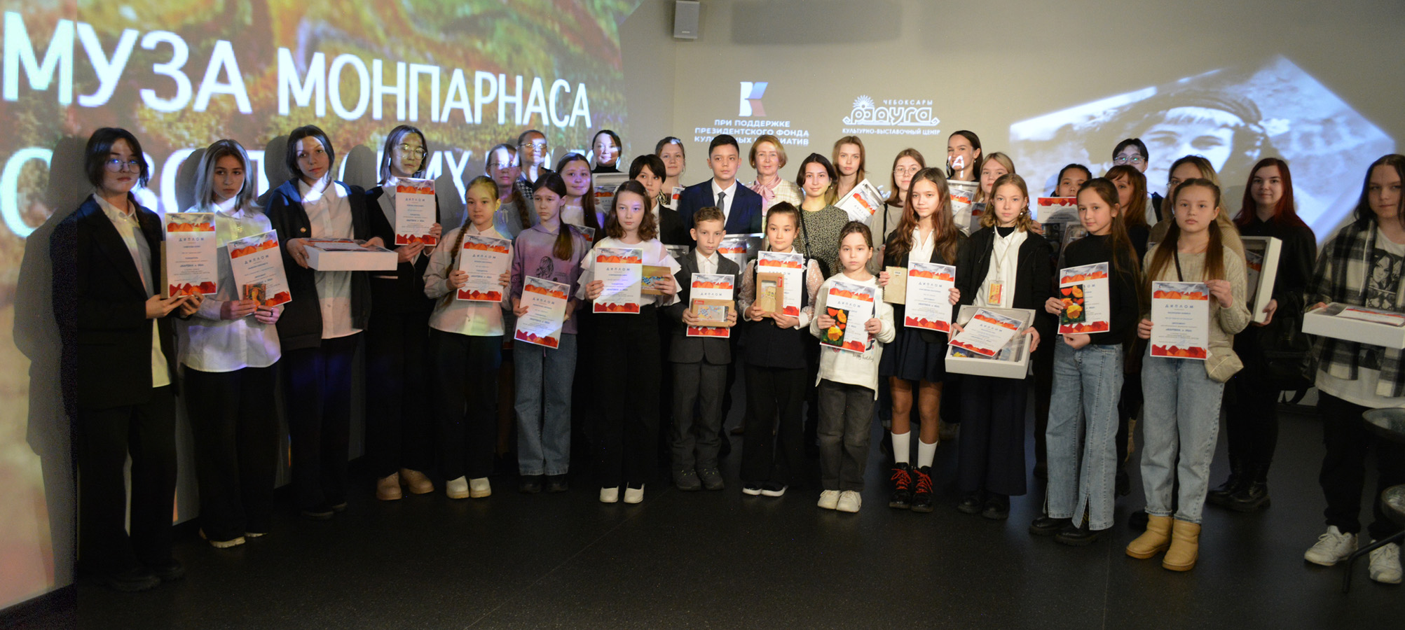 Директор КВЦ «Радуга», заслуженный работник культуры Чувашской Республики Нина Смирнова поздравила победителей и дипломантов с открытием выставки и наградила памятными дипломами и подарками, пожелав словами Маревны «иметь достаточно юношеской энергии, чтобы жить, чтобы работать и, конечно, чтобы любить!».