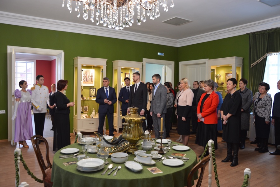 Началось мероприятие с ознакомления с выставочными залами, которые представляют собой «Вводный зал», «Зал основания города Алатыря», «Зал крестьянского быта», «Религиозный зал» и «Дворянский зал». По прибытии в «Дворянский зал» Олег Алексеевич со Светланой Анатольевной произнесли приветственное слово и приступили к вручению наград.
