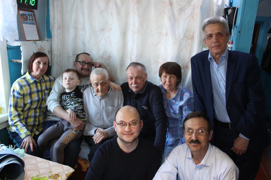 Такие люди как Ермолай Федорович Пахарев являются достоянием нации, хранителями исторической памяти и жизненного опыта нашего народа. Ермолай Федорович родился 16 апреля 1924 года в Козловском районе. На войну был призван Шумерлинским горвоенкоматом. На фронте был наводчиком артиллерийского орудия, участвовал во многих значимых битвах Великой Отечественной войны. В 1947 году демобилизовался и вернулся в родные края. Долгое время работал в лесном хозяйстве Шумерлинского района. Всегда надежной опорой для Ермолая Федоровича была семья. Супруги Пахаревы вырастили и воспитали 7 детей. К сожалению в 2008 году умерла жена, дети выросли и разъехались. Сейчас у Ермолая Федоровича 12 внуков и 5 правнуков. Ермолай Федорович сейчас живет с дочерью Татьяной, одному справляться уже стало тяжело. Дети, внуки и правнуки часто звонят и приезжают к любимому деду. Вот и сегодня в доме Ермолая Федоровича шумно и многолюдно. Дети, внуки и правнуки поздравляют главу своего семейства и планируют, как будут отмечать 100-летний юбилей.