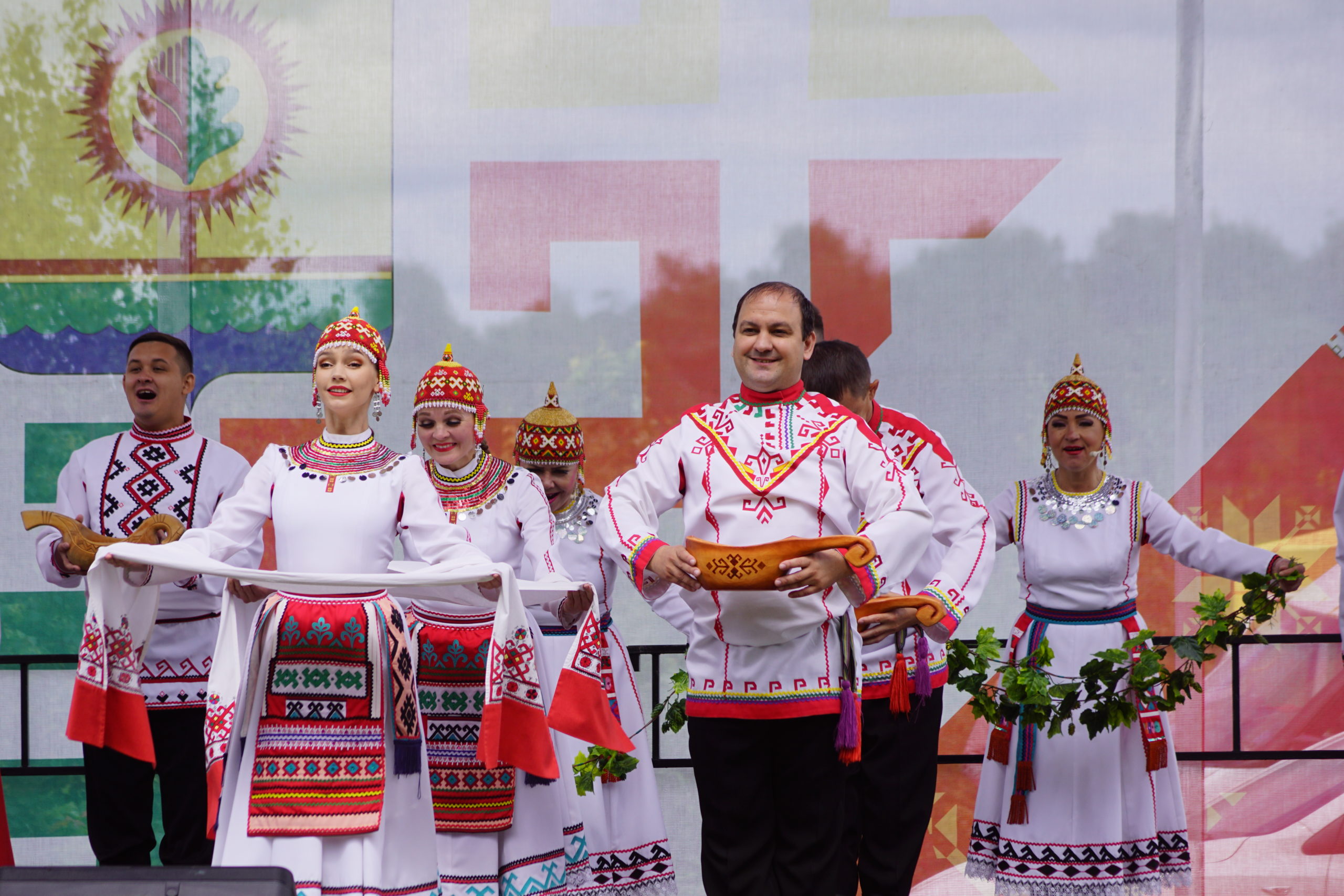 Творческая программа началась с хореографической композиции в исполнении государственного академического ансамбля песни и танца им. Васильева. Гостей угостили караваем и традиционным чувашским напитком. Затем участники ансамбля завели общий хоровод, в который были вовлечены творческие коллективы округа, почетные гости и все желающие.