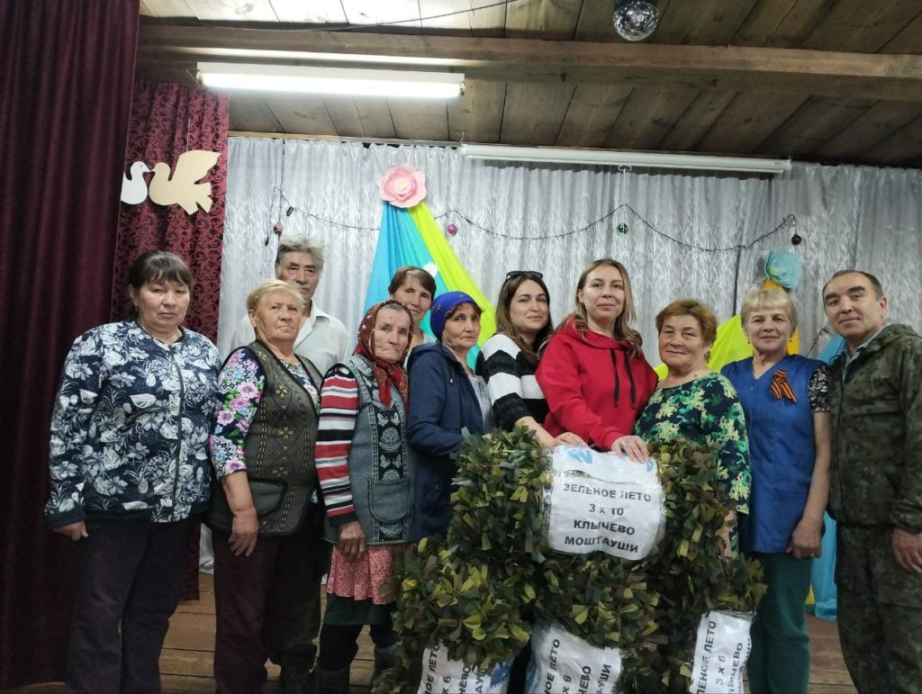 Огромное количество воинских частей за «ленточкой» маскировочными сетями снабжают общественницы Чебоксарского местного отделения Союза женщин Чувашии. Тренькасинские волонтеры объединения «Катюша» Марину с Ингой направили к председателю Наталии Ердуковой. Ведь под ее руководством сегодня мастерские по изготовлению таких средств укрытия работают практически в каждом пятом населенном пункте Чебоксарского округа. Один из самых крупных в д. Моштауши. Здесь и состоялась теплая встреча с женами добровольцев.