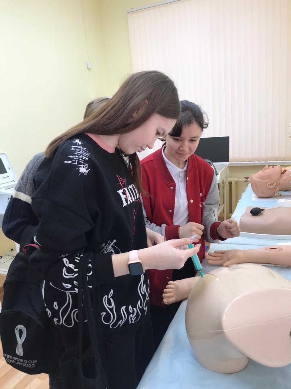 10 февраля гостей встречал медицинский факультет . Знакомство началось с посещения Анатомического музея, где представлены более 1000 сухих и влажных натуральных препаратов по всем разделам анатомии, изготовленных преподавателями кафедры нормальной и топографической анатомии с оперативной хирургией и студентами-кружковцами. Затем будущие врачи побывали Аккредитационно-симуляционном центре, оснащенном современным симуляционно-тренажерным оборудованием. Под руководством студентов-старшекурсников ребята попробовали приемы оказания первой помощи, выполнения внутримышечных инъекций, наложения хирургических швов, работы на учебной стоматологической установке.