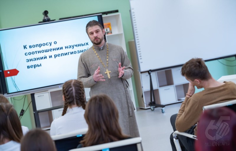 Слушателями лекций в рамках "Разговоры о важном" о соотношении научных знаний и религиозной веры стали учащиеся старших классов МБОУ "Средняя общеобразовательная школа № 65" и студенты Чебоксарского профессионального колледжа им. Н.В. Никольского.