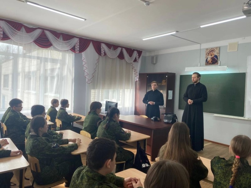 Во время встречи с учащимися кадетских классов были подняты важные христианские темы: о святых воинах и защитниках Отечества, православии в истории России, смысле жизни и т.д. Ребята не остались равнодушными от встречи, задавали вопросы.