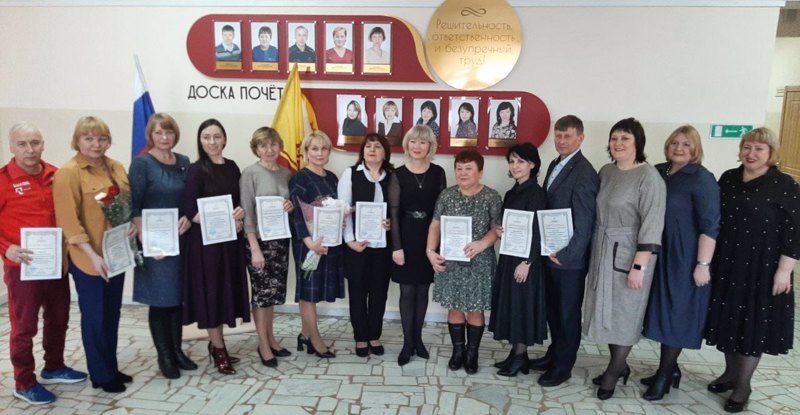 Директор школы Вера Васильевна Хорькова торжественно вручила Свидетельства о занесении на Доску Почета учителям: