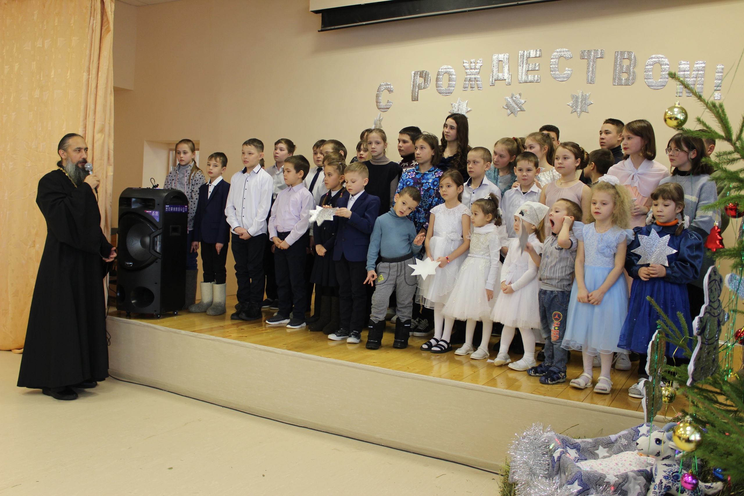 Рождественский праздник благословил настоятель храма Святой Троицы иеромонах Агафон . Он поздравил детей и взрослых с Рождеством Христовым и пожелал всем мира и добра. Праздник открылся пением рождественского тропаря. Участники праздника рассказали о традициях и обычаях Рождества, поведали историю рождения младенца Христа, показали театрализованные представления, Рождественские колядки, с радостью читали стихотворения и пели песни о Рождестве. В фестивале приняли участие и обучающиеся Липовской основной школы. Они показали театрализованное представление «Сурхури». Выступление юных талантов никого не оставил равнодушным — зрители любовались разворачивающимися действиями буквально затаив дыхание.