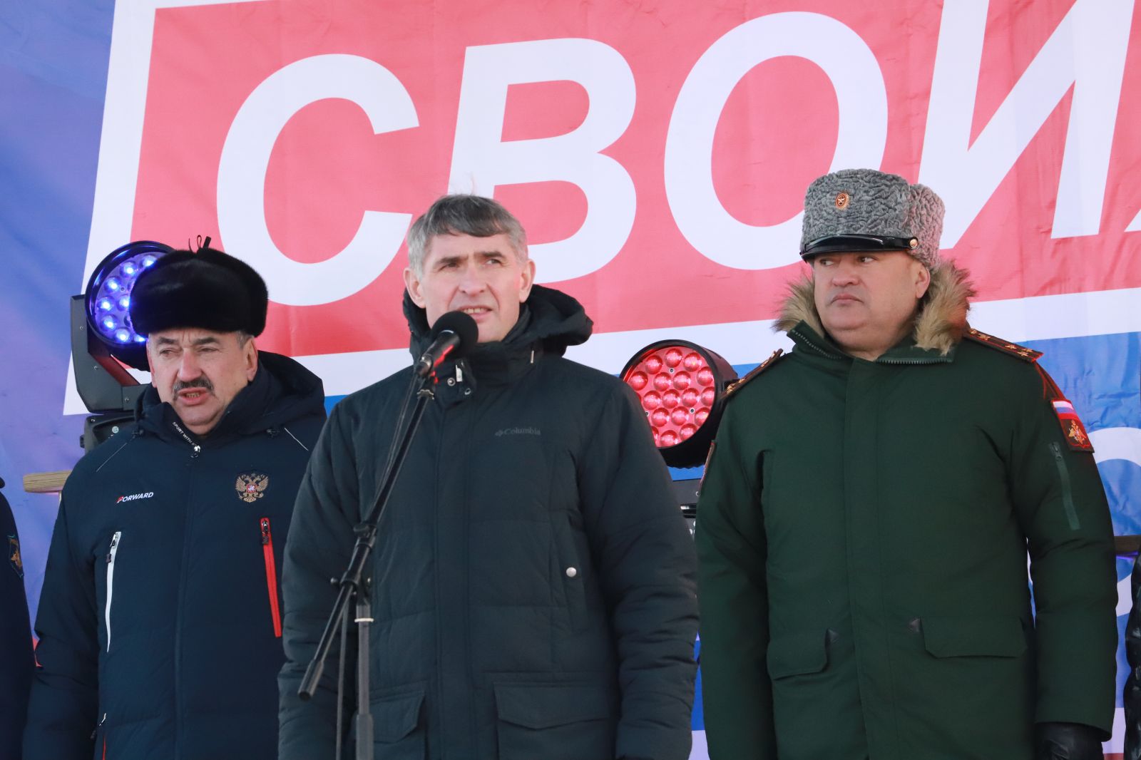Дружной колонной пришли на митинг члены и сторонники партии СПРАВЕДЛИВАЯ РОССИЯ-ЗА ПРАВДУ во главе с депутатом ЧГСД Федором Степановым. Они завяли о своей поддержке проведения СВО, готовности и впредь оказывать гуманитарную помощь бойцам, воюющих против украинских неонацистов и их западных приспешников.