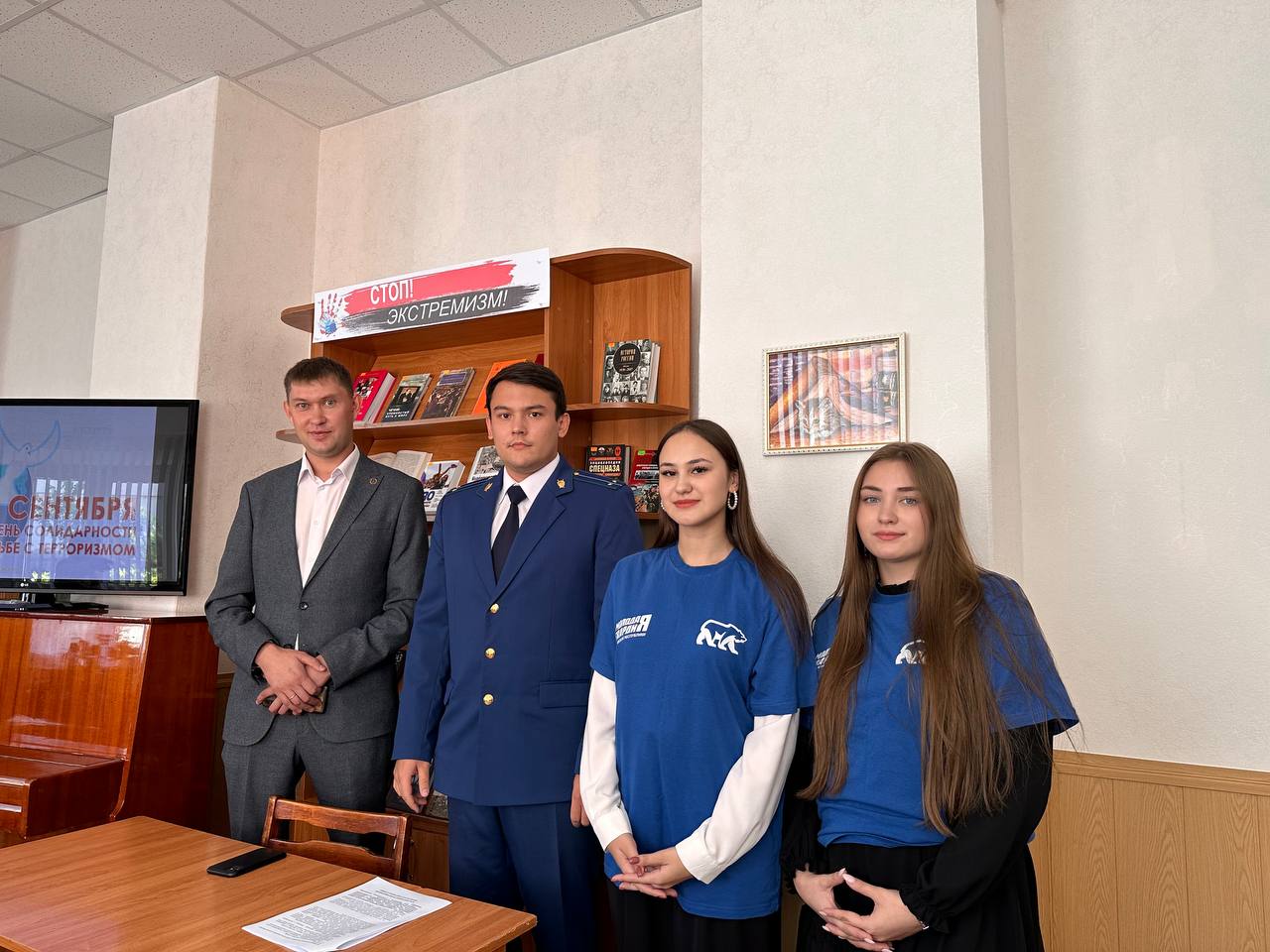 В Центральной библиотеке города Канаш состоялась профилактическая беседа со студентами Канашского филиала Финуниверситета. Инициаторами проведения мероприятия выступили активисты Канашского местного отделения «Молодой Гвардии» в рамках Дня солидарности в борьбе с терроризмом. Спикерами на встречу были приглашены сотрудники Канашской межрайонной прокуратуры.