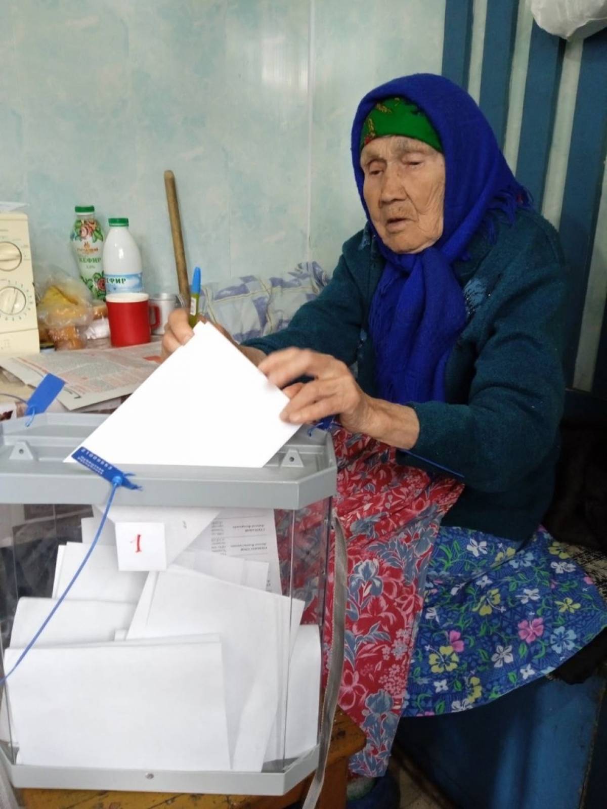 На избирательном участке № 1228 д.Ижелькасы сделала свой выбор 100-летняя ветеран Иванова Перасковия Ивановна.