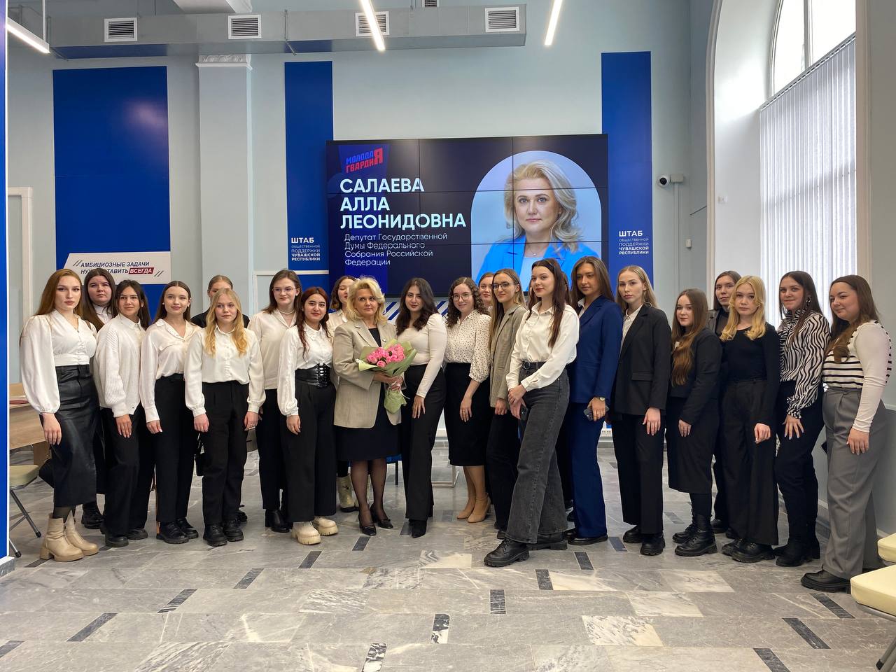 В преддверии празднования Международного женского дня в Штабе общественной поддержки в городе Чебоксары состоялось очередное заседание регионального представительства политического клуба МГЕР «Политика в деталях» с участием депутата Государственной Думы Федерального Собрания Российской Федерации Аллы Леонидовны Салаевой.