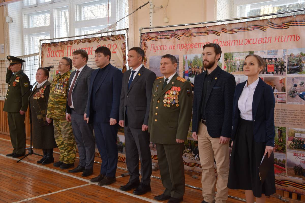 С приветственным словом к школьникам и студенческой молодежи обратились руководитель фракции «Единая Россия» в Государственном Совете Чувашской Республики Николай Николаев , глава администрации Московского района г. Чебоксары Сергей Ильин , директор школы Алексей Ляхов . Также выступили председатель комитета ветеранов войны и военной службы Московского района г. Чебоксары, подполковник запаса Игорь Почейкин , председатель Местного отделения ДОСААФ России Московского района г. Чебоксары Андрей Кузьмин .