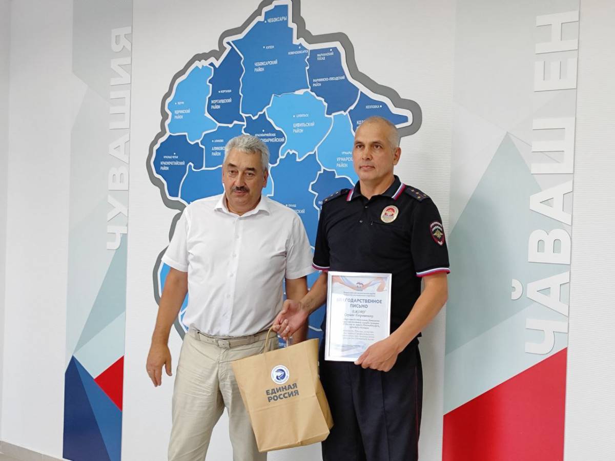 Сегодня Секретарь регионального отделения партии «Единая Россия», Председатель Государственного Совета Чувашской Республики Леонид Черкесов встретился с капитаном полиции Сергеем Ежовым, командиром взвода отдельного батальона патрульно-постовой службы полиции ОМВД России по городу Новочебоксарск.