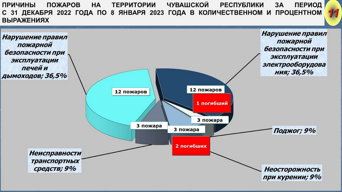 Об этом рассказал председатель Государственного комитета по делам гражданской обороны и чрезвычайным ситуациям Сергей ПАВЛОВ. Он начал с того, что в период с 31 декабря 2022 года по 8 января 2023-го в республике зарегистрированы 33 пожара (за указанный период 2021-2022 годов — 50). В результате этих ЧП погибли 3 человека (за прошлый период — 4), травмы различной степени тяжести получили 9 человек (4), спасены 29 человек (8).