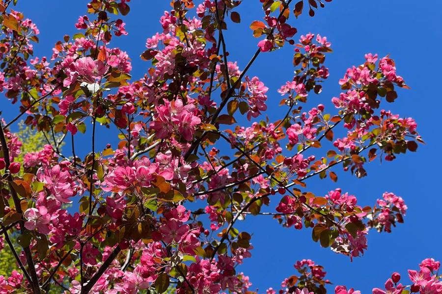 Яблоня сорта Роялти зацвела в Парке Николаева. Восхитительный декоративный сорт, не уступающий в красоте японской сакуре.