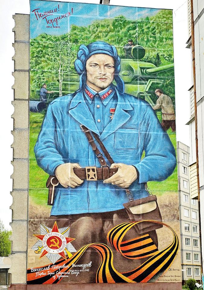 Чуть больше месяца назад “Грани” сообщили об инициативе главы администрации Новочебоксарска Дмитрия ПУЛАТОВА и городского Собрания депутатов нанести на торцевую стену девятиэтажки по ул. Винокурова, 26а портрет Героя Советского Союза, именем которого и названа улица. Проект получил поддержку и одобрение новочебоксарцев, в результате голосования был выбран вариант с картины Ореста Филиппова. Что получилось в итоге, вы можете видеть на снимке. Мы снова спросили горожан, на сей раз о результате.