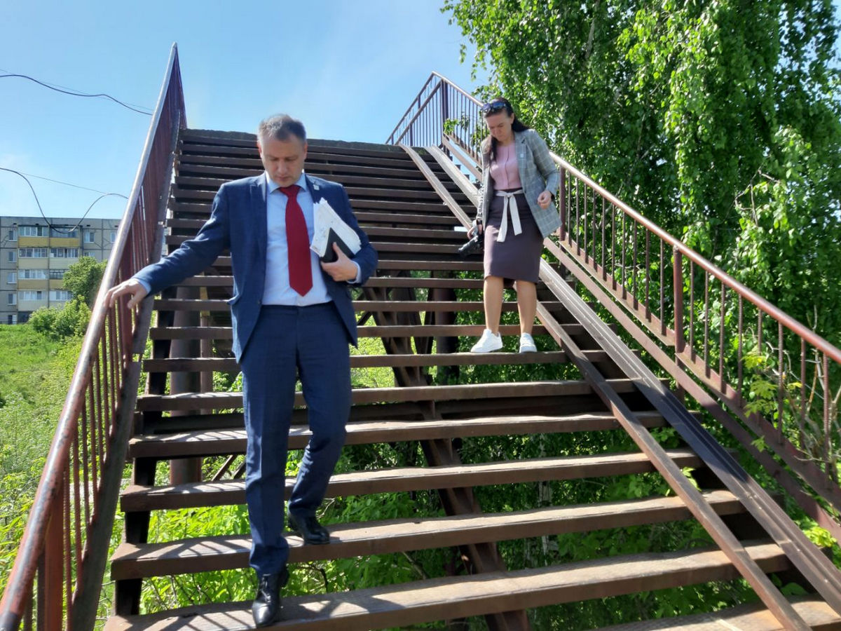 Сразу после встречи с коллективом Детской музыкальной школы в рамках информационного дня и.о. главы администрации Максим СЕМЕНОВ отправился к лестнице, что находится в Ивановском микрорайоне.