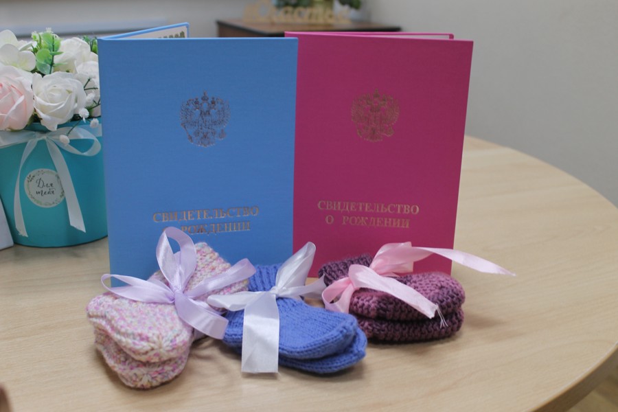 Начальник отдела ЗАГС Ирина Виноградова поздравила новоиспеченных родителей с замечательным событием, пожелала семьям крепкого здоровья, благополучия, тепла, уюта, вручила первый государственный документ – свидетельство о рождении – и, конечно, подарок, сделанный с любовью, - пинетки от активистов «Движения Первых».
