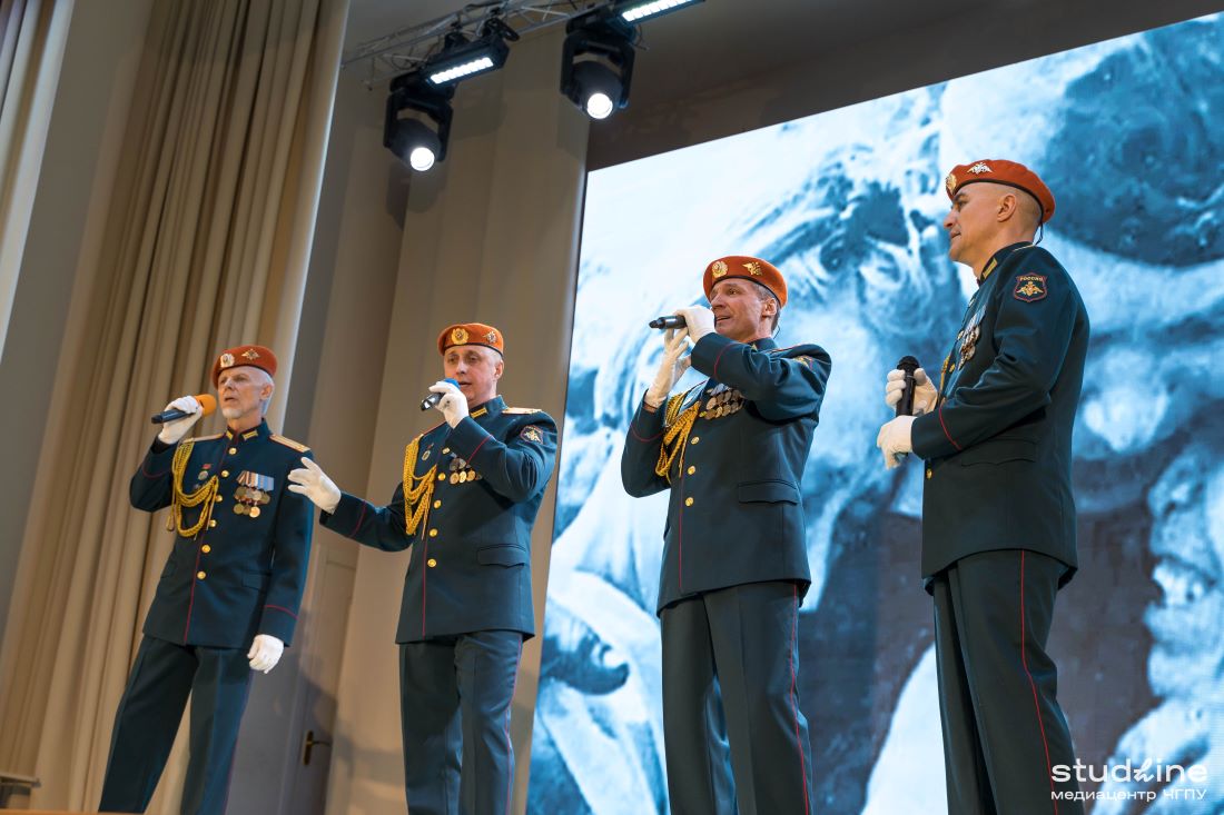 В зале присутствовали дети войны, труженики тыла, участники боевых действий в горячих точках, офицеры запаса, преподаватели, сотрудники и студенты педагогического университета.