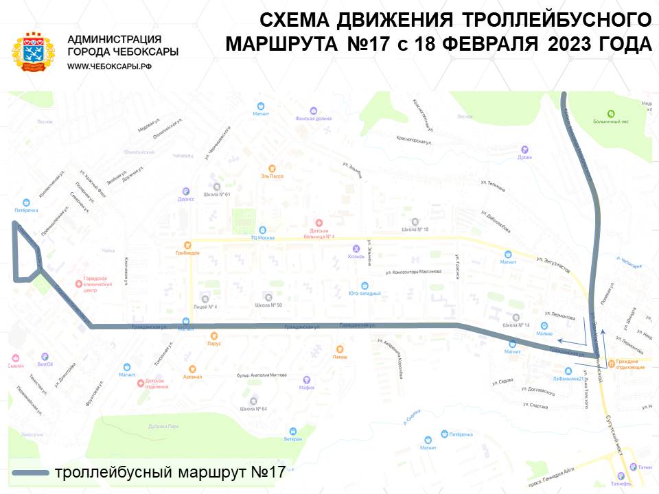 Троллейбусы по маршруту № 17 в обоих направлениях будут следовать только по ул. Гражданской.