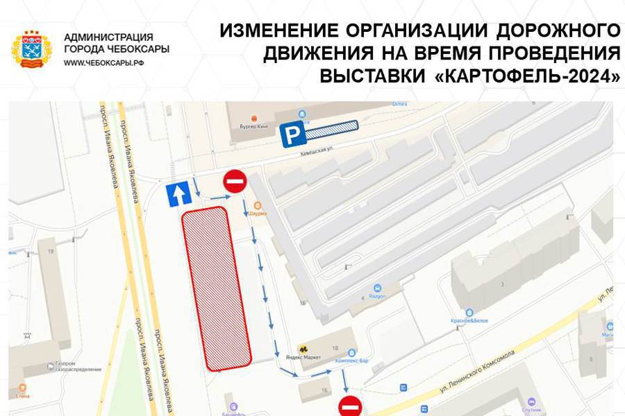 С 29 февраля по 1 марта будет изменена организация дорожного движения у МТВ центра в Чебоксарах В связи с проведением с 29 февраля по 1 марта в МТВ центре межрегиональной выставки "Картофель-2024" изменяется организац