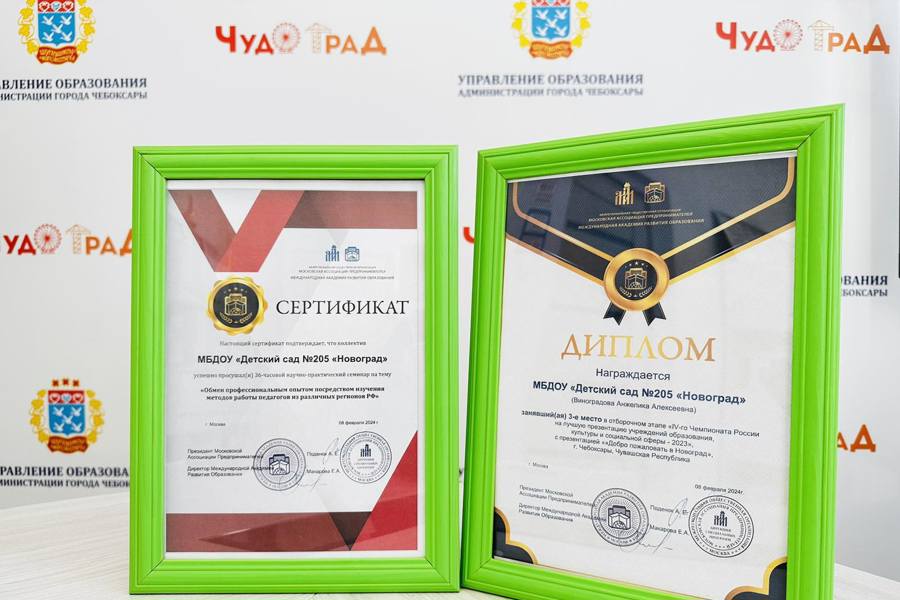 Так, детский сад №205 г. Чебоксары занял 3 место в отборочном этапе IV-ого Чемпионата России на лучшую презентацию учреждений образования, культуры и социальной сферы – 2023. Участниками конкурса стали образовательные организации Российской Федерации. Детский сад представил достойный материл о реализации образовательного процесса в учреждении, продемонстрировав профессиональное мастерство, творчество и креативность!