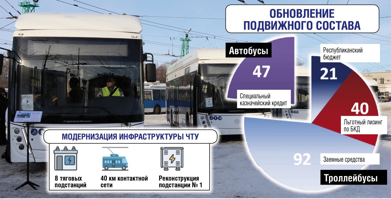 Были найдены источники финансирования для обновления парка. Это средства как самой республики, так и заемные и кредитные. 21 троллейбус уже поступил, также Чувашская Республика получила 47 новых автобусов. Еще 132 троллейбуса придут в течение года.