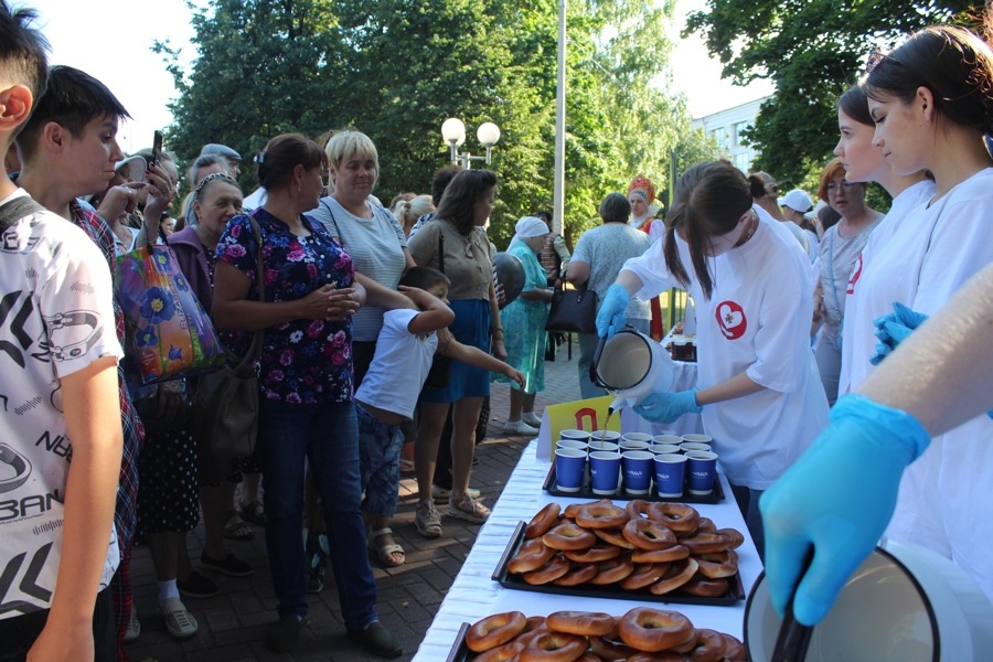 Сегодня чебоксарцы гуляя по скверу Чапаева смогли угоститься на полевой кухне ароматным чаем и вкусными баранками.