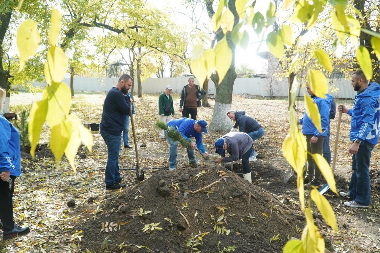 В Бердянском районе шефы из Чувашии приняли участие в посадке деревьев на аллее парка Победы в селе Азовское