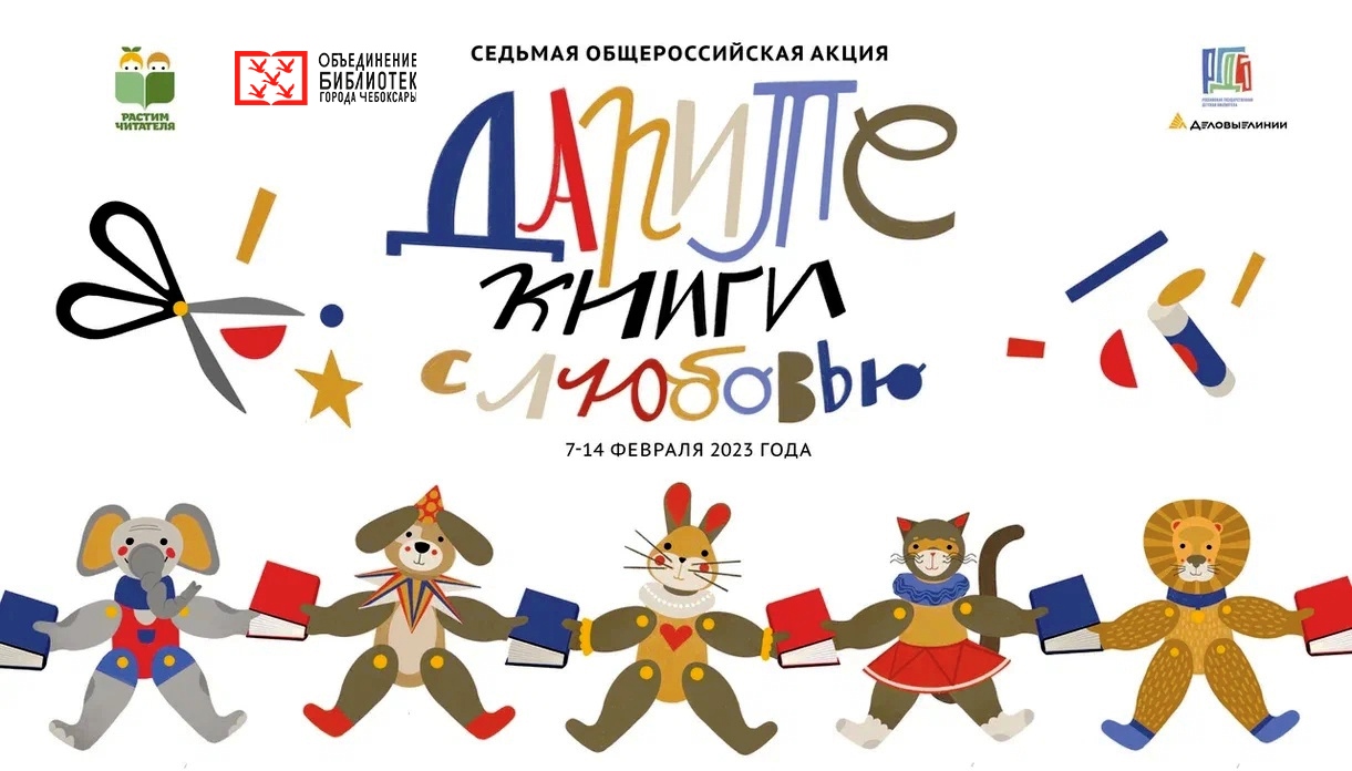 С 7 по 14 февраля 2023 года Объединение библиотек города Чебоксары приглашает горожан и гостей столицы принять участие в Седьмой общероссийской акции «Дарите книги с любовью!».