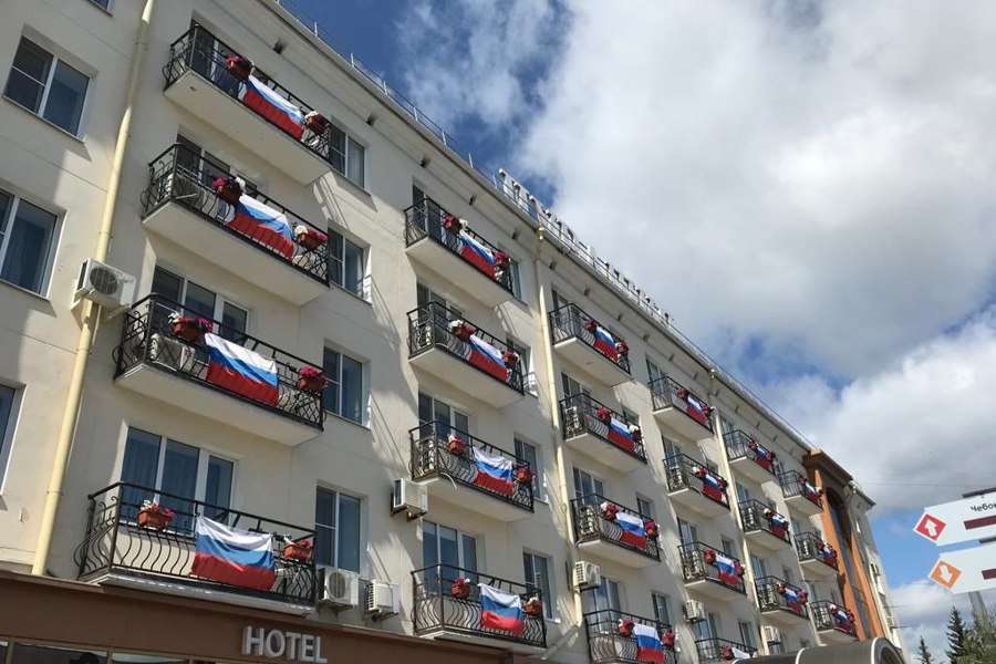 Одной из первых акцию поддержала гостиница «Чувашия», которая вывесила на свои балконы более 20 флагов.