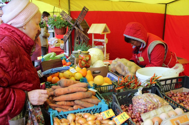 Покупателям было предложено: картофель продовольственный и семенной, лук репчатый, морковь, огурцы, помидоры, капуста, свекла, рыба, мясная и молочная продукция, крупы, мука, мед, сыры, хлебобулочные изделия, напитки и т.д.