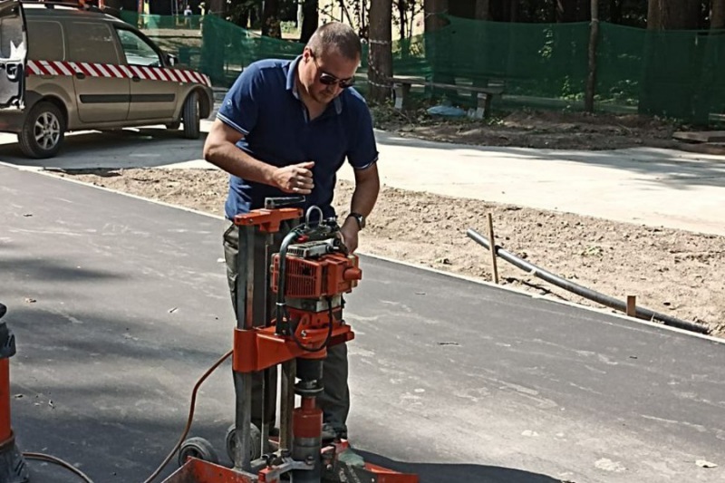 В Ельниковской роще с пешеходных дорожек взяли пробы асфальта для оценки его качества. Керны направят в лабораторию, где эксперты оценят плотность и прочность покрытия.