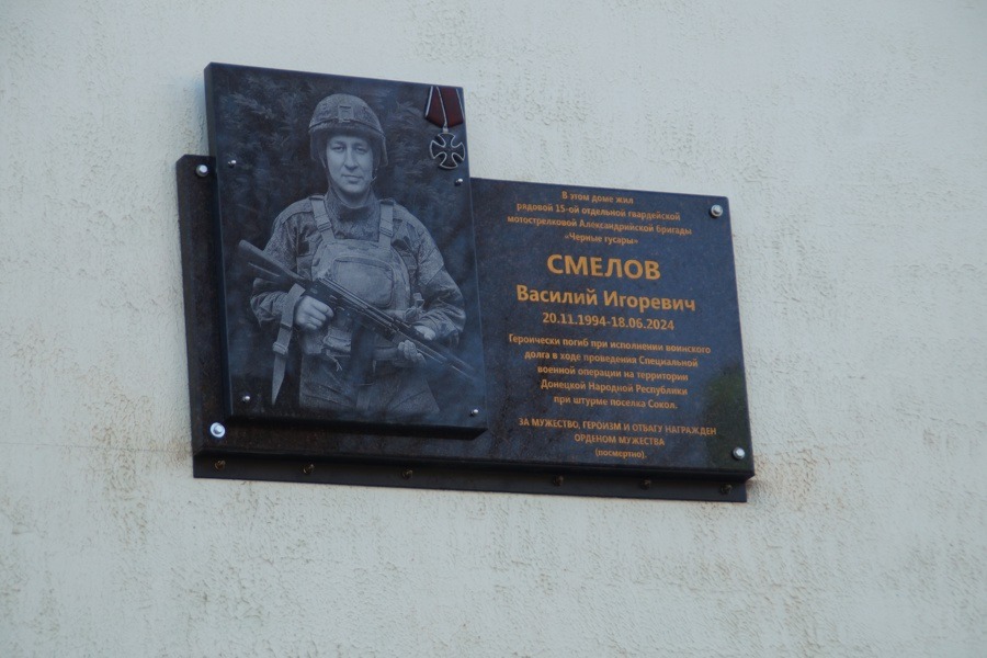 В память об участнике спецоперации Василии Смелове в Чебоксарах открыли мемориальную доску