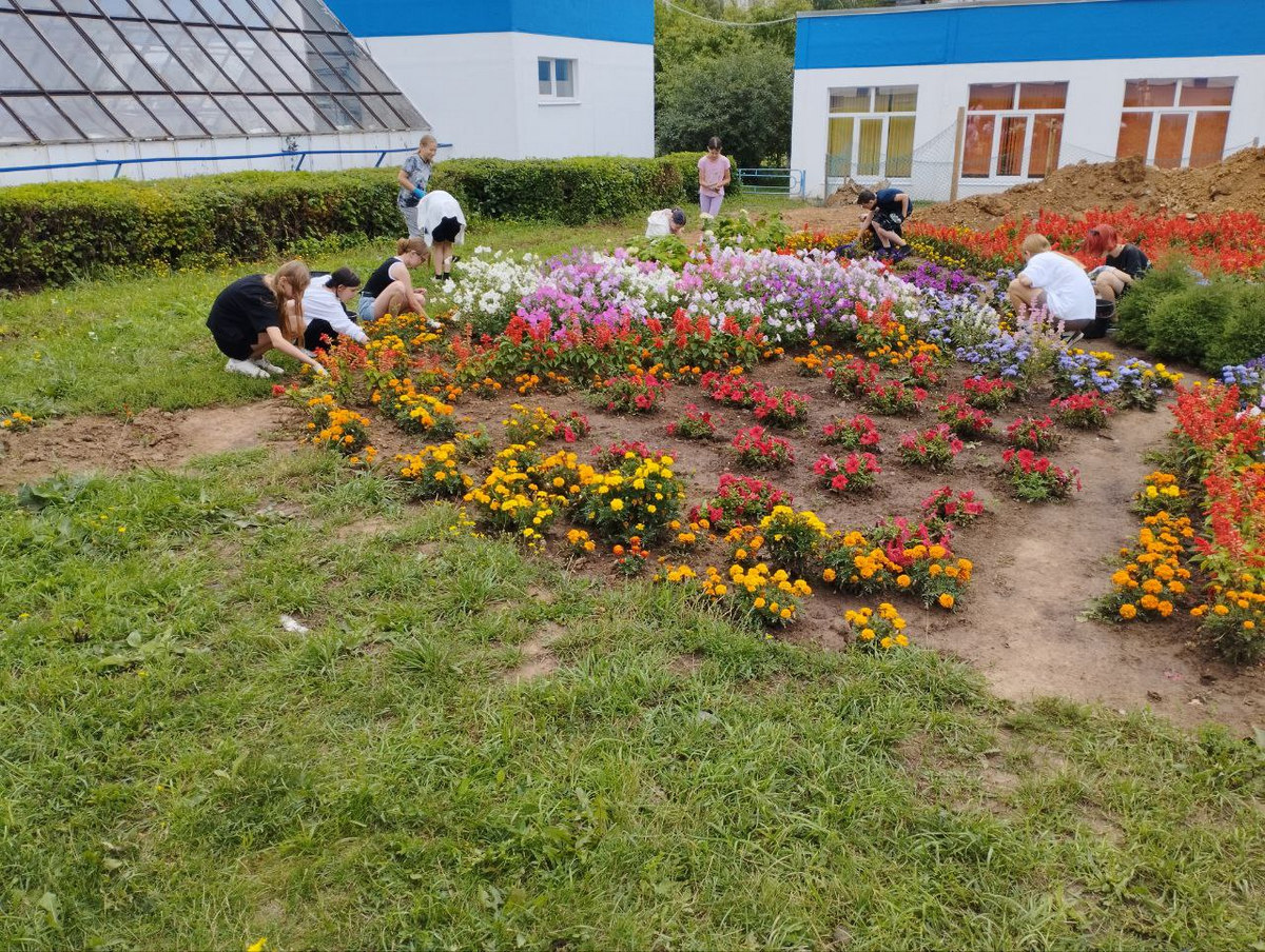 Нынешним летом традиционную клумбу у теплицы едва не испортил ремонт теплотрассы по соседству. Однако благодаря ученикам и педагогам клумбу удалось спасти.